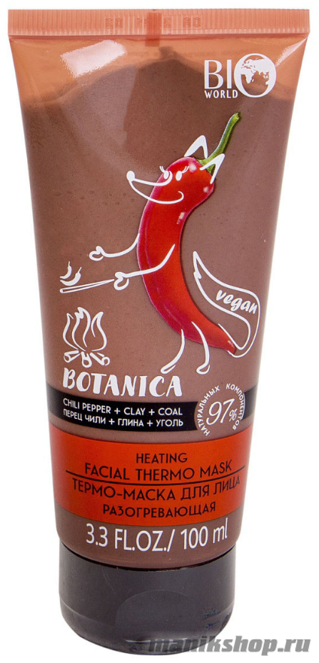 Маска разогревается при соприкосновении с кожей, создавая эффект сауны. Обеспечивает экспресс-регенирацию кожи, глубокое очищение пор, устраняет жирный блеск. Перец чили ускоряет микроциркуляцию, способствует формированию новых клеток. Выравнивает тон кожи за счет восстановления процесса кровообращения. Глина - природный абсорбент. Выводит из тканей токсины, способствует глубокому очищению кожи. Березовый уголь - природный антисептик, способствует поддержанию здоровья кожи.
