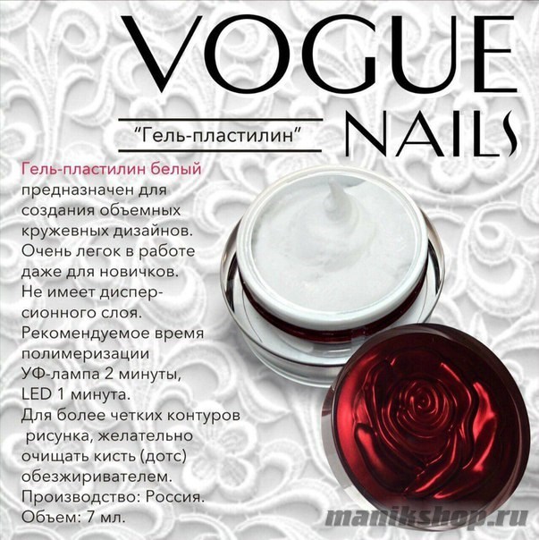 Заказать и купить 004К Vogue nails Гель-пластилин белый 7гр по выгодной цене вы можете следующим одним из способов:
