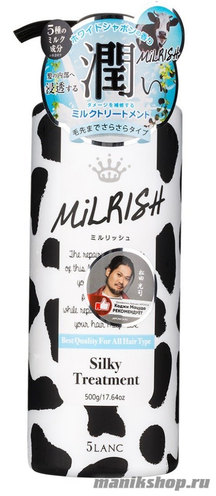 Рекомендуется использовать вместе с MILRISH Шампунь-уход бессиликоновый с молочными протеинами Блеск и Объем.