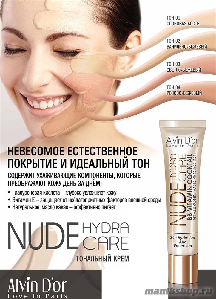 Заказать и купить 064661 Alvin D'or Крем тональный для лица NUDE BB Vitamin cocktail, тон 04 розово бежевый 25мл BC-03 по выгодной цене вы можете следующим одним из способов: