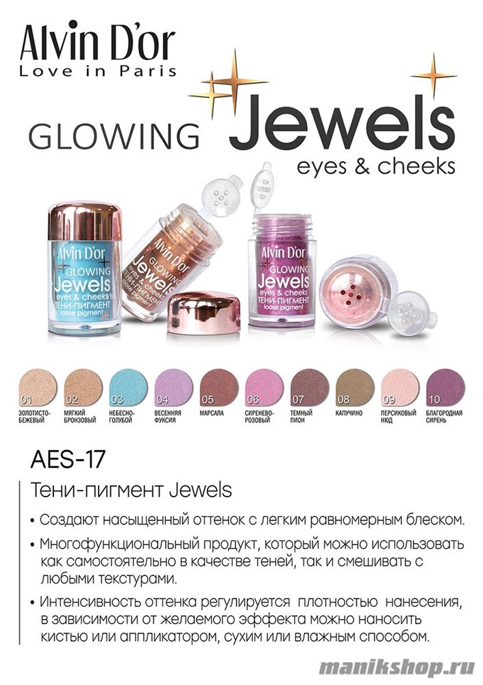Заказать и купить 075889 Alvin D'or AES-17 Тени- пигмент для век Jewels тон 10 лавандовый по выгодной цене вы можете следующим одним из способов: