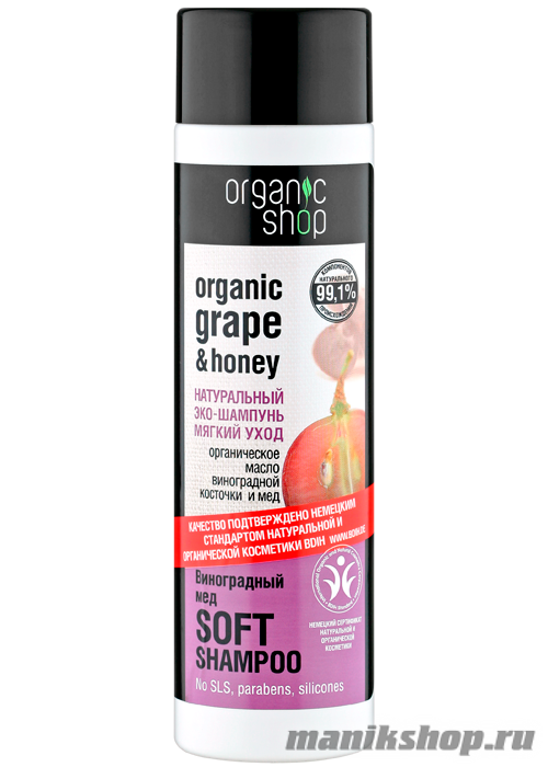 Подарите Вашим волосам удивительную мягкость и лёгкость благодаря органическому маслу винограда и мёду. Масло виноградной косточки сохраняет и удерживает питательные вещества в волосе, сглаживая его структуру, предохраняя от повреждений. Мёд придаёт волосам упругость и здоровое сияние.