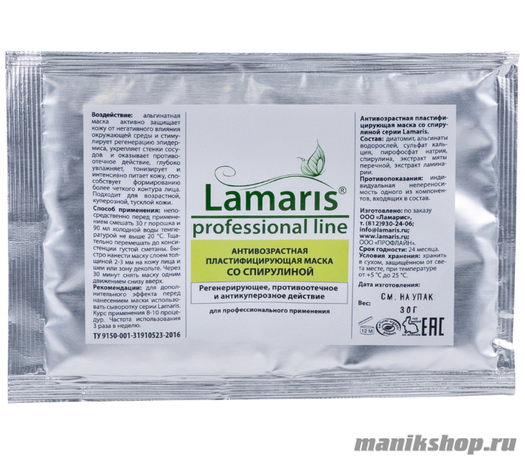Применение: непосредственно перед применением смешать до консистенции густой сметаны состав маски с холодной водой (t не выше 20 С). быстро нанести маску слоем толщиной 2-3 мм на кожу лица и шеи или зону декольте. Через 30 минут снять маску одним движением снизу вверх.