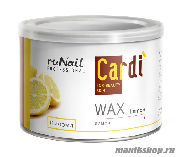 Заказать и купить 2030 RuNail Воск для депиляции Cardi (Лимон) 400мл по выгодной цене вы можете следующим одним из способов: