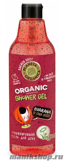 PLANETA ORGANICA SKIN SUPER FOOD SEED ГЕЛЬ ДЛЯ ДУША ТОНИЗИРУЮЩИЙ "GUARANA & BASIL SEEDS" 250 МЛ