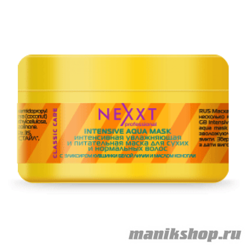 МАСКА УВЛАЖНЯЮЩАЯ ИНТЕНСИВНАЯ - INTENSIVE HYDRA MASK Маска мгновенного увлажнения и питания идеальна как для здоровых волос с целью профилактики, так и для волос, сухих только на кончиках, а также для сухих волос, которые повреждены химической завивкой, окраской, сушкой слишком горячим воздухом и которые часто оказываются под действием неблагоприятных внешних факторов: кондиционера, пыли мегаполиса, яркого солнца. Масло конопли в маске придает ей противовоспалительное, заживляющее, регенерирующее, антиоксидантное, увлажняющее, питательное, смягчающее действие для кожи головы и волос. Маска удачна в решении таких проблем как перхоть, сухость, отсутствие блеска, выпадение волос, вызванное сухостью кожи головы и посеченные кончики. Средство подходит для жирных волос - способствует сужению пор и сальных протоков, что уменьшает выделение жира. Конопляное масло превосходно увлажняет локоны волос, восстанавливает их эластичность, делает вьющиеся волосы послушными, блестящими. Маску равномерно распределить на чистых влажных волосах, оставить действовать несколько минут. Затем тщательно промыть водой.