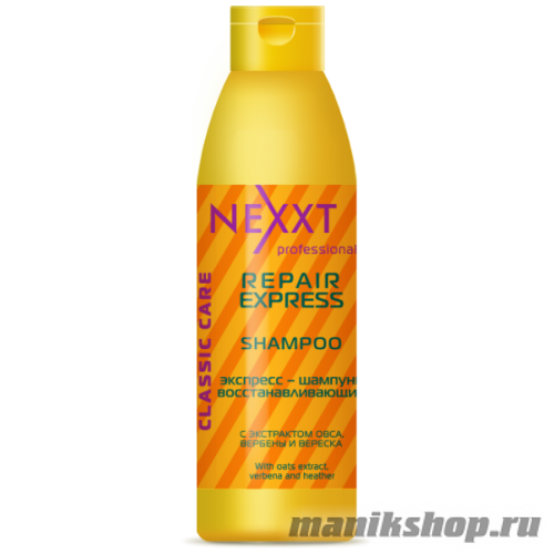 ВОССТАНАВЛИВАЮЩИЙ ЭКСПРЕСС-ШАМПУНЬ - REPAIR EXPRESS-SHAMPOO Это средство - мгновенного действия. Эффект обусловлен в молниеносном глубоком проникновении в структуру поврежденного волоса. Интеллектуальный состав шампуня помогает выделить поврежденный участок волоса и осуществить быстрое восстановление, в т.ч кератированием. Входящий в состав экстракт вербены выполняет также роль антиоксиданта и эффективно регенерирует волосы всего за 30-60 секунд, реконструируя поврежденные участки. Даже при однократном применении - очевидный положительный результат, при систематическом использовании: эффект блеска и мягкости волос, предотвращает излишнюю ломкость и секущиеся кончики. Усиливает защитные свойства волос, делает их упругими и шелковистыми. Экстракт вереска содержит арбутин, флавоноиды, сапонины, смолы, что обеспечивает их дезинфицирующее, очищающее и успокаивающее действие на кожу головы и возрождение подверженных сильным химическим процедурам волос, особенно поврежденных. Шампунь равномерно распределить на влажные волосы, вспенить. Тщательно смыть.