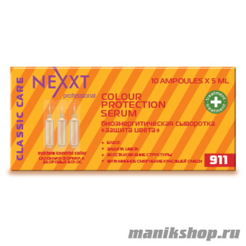 Сыворотка обеспечивает деликатное закрепление и освежение цветовых пигментов, обладает эффектом защиты волос при окрашивании, осветлении и химической завивке, способствует появлению блеска и мягкости волос. Эксклюзивный комплекс ухаживающих и защищающих компонентов, оказывает щадящее и смягчающее воздействие на волосы как в момент нанесения смеси, так и в процессе действия реакции и главное – продолжительное время - после окрашивания. При добавлении в косметический химический препарат (краситель, средство для химической завивки или выпрямления волос, осветляющий порошок) значительно снижает негативные воздействия на волос и кожу головы. Способствует выравниванию структуры волос. Активные компоненты сыворотки питают волосы и обволакивают их невидимой защитной пленкой, эффективно препятствуя потере интенсивности цвета и блеска. Ампулы обладают мягким кондиционирующим эффектом и освежают стойкий переливающийся цвет. Сыворотка реконструирует как посеченные кончики волос, так и полностью поврежденный волос. Природные компоненты: перуанский бальзам-смола – способствует регенерации клеток кожи головы и волосяного фолликула, хвощ полевой - увлажняет окрашенные волосы, а бурые водоросли (фукус пузырчатый) – смягчают кожу головы, улучшают водно-солевой обмен, оказывают ревитализирующий эффект. Экстракт меда и комплекс витаминов А, С, E делают максимально щадящей и безопасной красящую смесь.