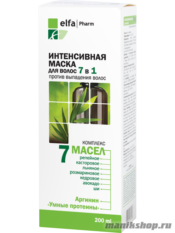Комплекс 7 масел: репейное, касторовое, льняное, розмариновое, кедровое, авокадо, ши Аргинин, «Умные протеины»