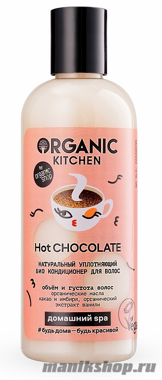 Шоколадное удовольствие и польза для густоты и невероятного объема ваших волос. Действуя как обертывание, био кондиционер полностью преображает и улучшает состояние прядей, уплотняет структуру, облегчает расчесывание и возвращает им мягкость и здоровый блеск. Органическое масло какао наполнит ваши волосы супер витаминами красоты и чудесным теплым ароматом. Обвола- кивая каждый волос, создает 3D объем без утяжеления. Органическое имбирное масло и органический экстракт ванили - super food`s красоты, интенсивно укрепляют и стимулируют рост новых волос. WOW - эффект от корней до самых кончиков!:)