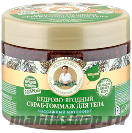 Кедрово-ягодный скраб-гоммаж для тела, созданный на основе натуральных природных компонентов, обладает массажным био эффектом, выравнивает рельеф, придает коже бархатистость и мягкость.