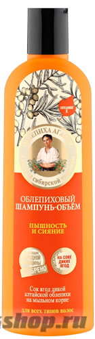 Облепиховый шампунь-объём для волос на основе сока диких ягод нежно очищает, наполняет волосы силой, придает максимальный объём и пышность.