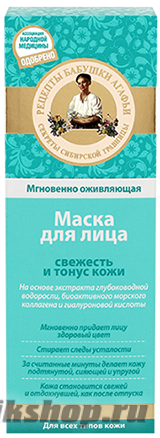 Мгновенно оживляющая маска для лица, созданная по рецептам сибирской травницы Агафьи, за считанные минуты освежит и восстановит уставшую кожу. Экстракт глубоководной водоросли обогащает кожу морскими минералами, стирает следы усталости и придает тонус коже. Биоактивный морской коллаген содержит большое количество полезных аминокислот, благодаря чему делает кожу более упругой и подтянутой. Гиалуроновая кислота насыщает кожу живительной влагой, делая ее ухоженной и бархатистой. Кожа становится свежей и отдохнувшей, как после отпуска.