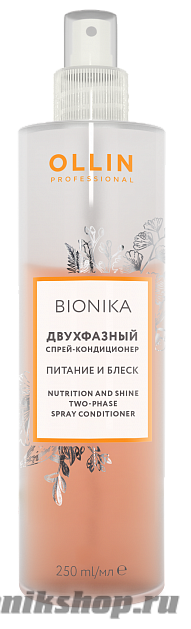 Ollin BioNika Nutrition And Shine Two-Phase Spray Conditioner - Двухфазный спрей-кондиционер для волос Питание и блеск (250 мл).