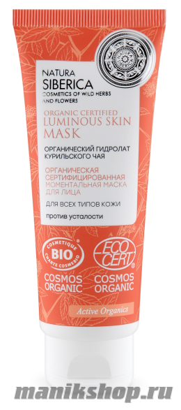 Органическая сертифицированная моментальная маска для лица для всех типов кожи разработана специально для снятия следов усталости, мгновенно улучшая внешний вид. Её формула, обогащенная высокоэффективными экстрактами сибирских растений, выравнивает и улучшает структуру кожи, придает ей сияние и свежесть.