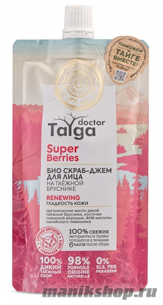Масло таежной брусники – обладает мощным антиоксидантным действием, выводит токсины, выравнивает цвет лица, возвращая здоровее сияние. Северная морошка благодаря высокому содержанию витамина Е глубоко питает, разглаживает мелкие морщины, делая кожу более эластичной и гладкой. АНА кислоты нанайского лимонника пробуждают клетки кожи, обновляют и тонизируют.