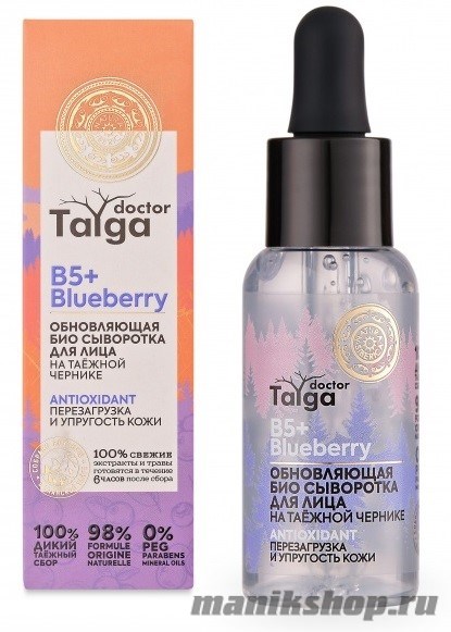 Таежная черника богата витаминами А и С, борется с возрастными изменениями, активизирует образование природного коллагена и эластина в клетках. Цветочная вода ледяной ангелики эффективно обновляет, тонизирует и укрепляет иммунитет кожи за счет высокой концентрации витамина С и органических кислот. PRO-витамин В5 обладает сильным омолаживающим эффектом, разглаживает мелкие морщинки, способствует регенерации кожи. Вулканическая голубика – природный антиоксидант. Экстракт вулканической голубики обновляет, выводит токсины и устраняет следы усталости.