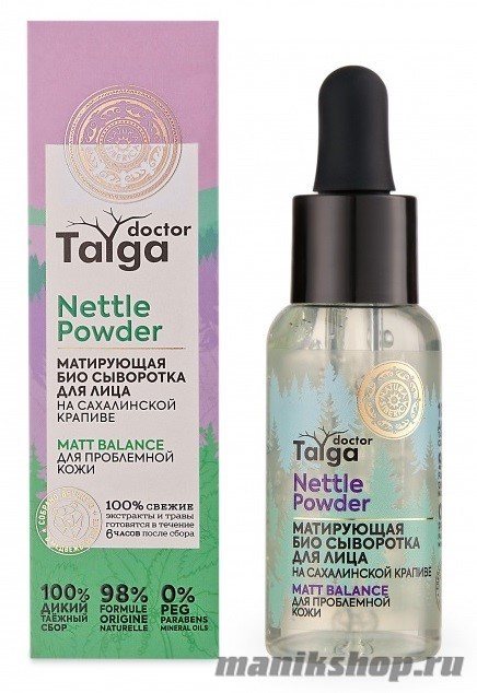 Цветочная пудра дикой сахалинской крапивы содержит 9 аминокислот, которые нормализуют работу сальных желез, устраняют воспаления, матируют и выравнивают тон кожи. Сибирский можжевельник – природный антисептик. За счет высокой концентрации флавоноидов и цинка, улучшает состояние кожи и сужает поры. Гидролат цветков линнеи северной богат дубильными вещества, формирует защитный барьер на коже, помогая противостоять воздействию окружающей среды.