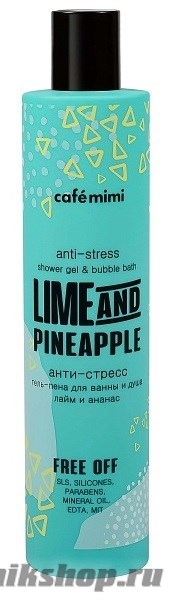Анти-стресс гель-пена для ванны и душа Лайм и Ананас CAFÉ MIMI перенесет тебя в мир удовольствия и полного расслабления, снимет напряжение и усталость.