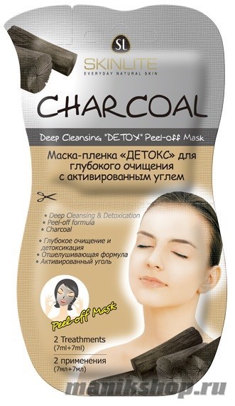 СКИНЛАЙТ Маска-пленка «ДЕТОКС» для глубокого очищения с активированным углем мягко удаляет загрязнения пор, абсорбирует излишки кожного сала, не пересушивая кожу, способствует сужению пор и избавлению от черных точек. Экстракты алтея розового, календулы и лотоса, входящие в состав маски, нейтрализуют негативное воздействие свободных радикалов.