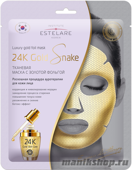 Входящее в состав золото замедляет процессы старения, усиливает регенерацию клеток, улучшает проникновение активных веществ и молекул кислорода глубоко в слои эпидермиса. Ферментированный бифида экстракт, гиалуроновая кислота и комплекс пептидов глубоко увлажняют, тонизируют и питают, выравнивают цвет и структуру кожи. Аргирелин расслабляет микронапряжение кожи, уменьшает количество и глубину мимических морщин, приостанавливает появление новых. Пептид Syn-Ake, подобно змеиному яду, "фиксирует" мышцы в расслабленном состоянии, минимизируя мышечные сокращения, вызывающие образование морщин. После использования маски сохраняется стойкий эффект омоложения, кожа становится упругой, эластичной, выглядит свежей и сияющей.