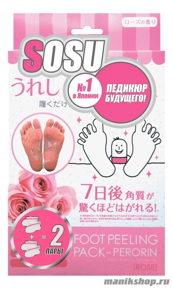 2. Наденьте носочки и оставьте на 1-2 часа в зависимости от состояния кожи стоп. Снимите носочки и помойте ноги в теплой воде. В течение 5-7 дней начнется отшелушивание верхних слоев кожи.