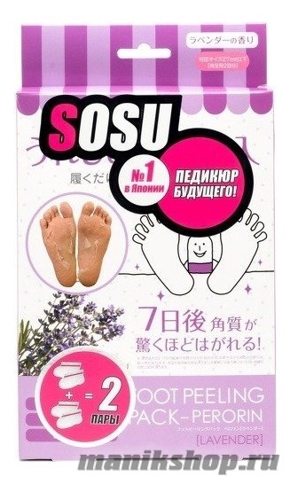 2. Наденьте носочки и оставьте на 1-2 часа в зависимости от состояния кожи стоп. Снимите носочки и помойте ноги в теплой воде. В течение 5-7 дней начнется отшелушивание верхних слоев кожи.