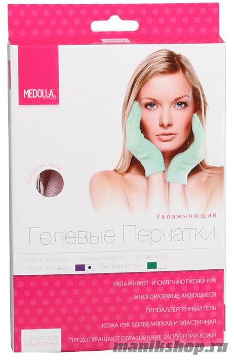 Увлажняющие гелевые перчатки Medolla имеют натуральный состав, их стоимость в несколько раз дешевле одного похода в салон красоты, процедуры по уходу не требуют дополнительного времени. Перчатки можно использовать много раз (около семидесяти). Со временем перчатки можно использовать вместе с питательным или увлажняющим кремом. Вместе с перчатками вы получите оригинальную фирменную упаковку и подробную инструкцию о товаре. Перчатки можно стирать в прохладной воде и сушить вдали от солнца. Внимание! Не использовать перчатки в качестве повседневной одежды! Это может повредить термопластичный резиновый гель, и снизить эффект масел и витамина Е.