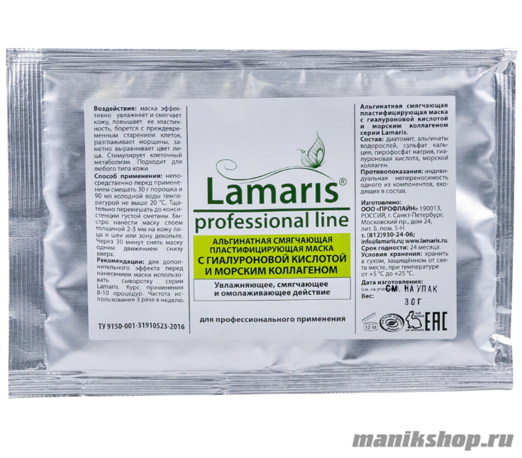 Альгинатная смягчающая пластифицирующая маска с гиалуроновой кислотой и морским коллагеном