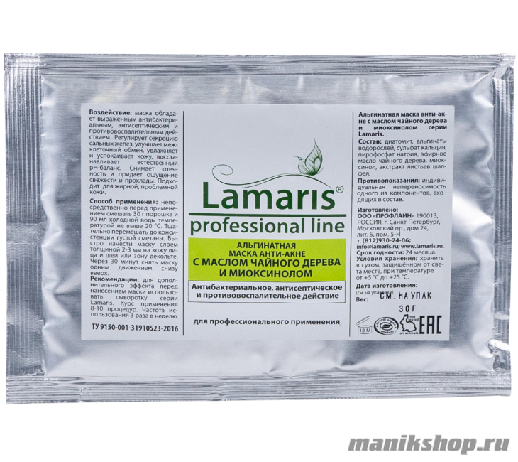 Альгинатная, маска анти-акне с маслом чайного дерева и миоксинолом.