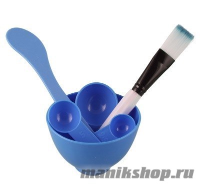 Набор емкостей разного объема, шпатель и кисть для удобного нанесения косметических средств.