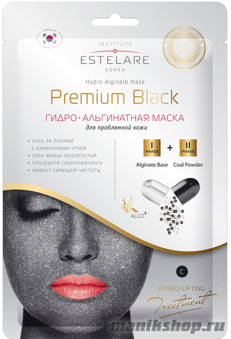 Гидроальгинатная маска Premium Black является процедурой гидролифтинга - глубокого длительного увлажнения с одновременной подтяжкой контуров лица, позволяющее убрать большинство возрастных изменений эпидермиса. Обладает способностью заполнять и разглаживать весь рельеф кожи, снимает напряжение лицевых мышц, оказывает лифтинговое, антиоксидантное и гидратирующее действие, удерживая влагу в два раза дольше, чем обычная альгинатная маска.