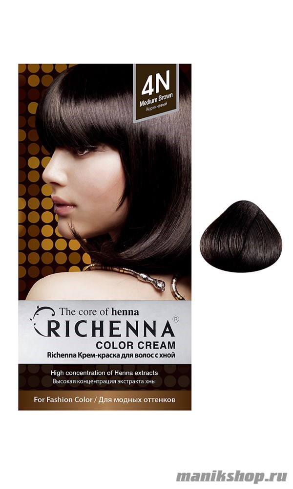 Заказать и купить RICHENNA № 4N Крем-краска для волос с хной Коричневая по выгодной цене вы можете следующим одним из способов: