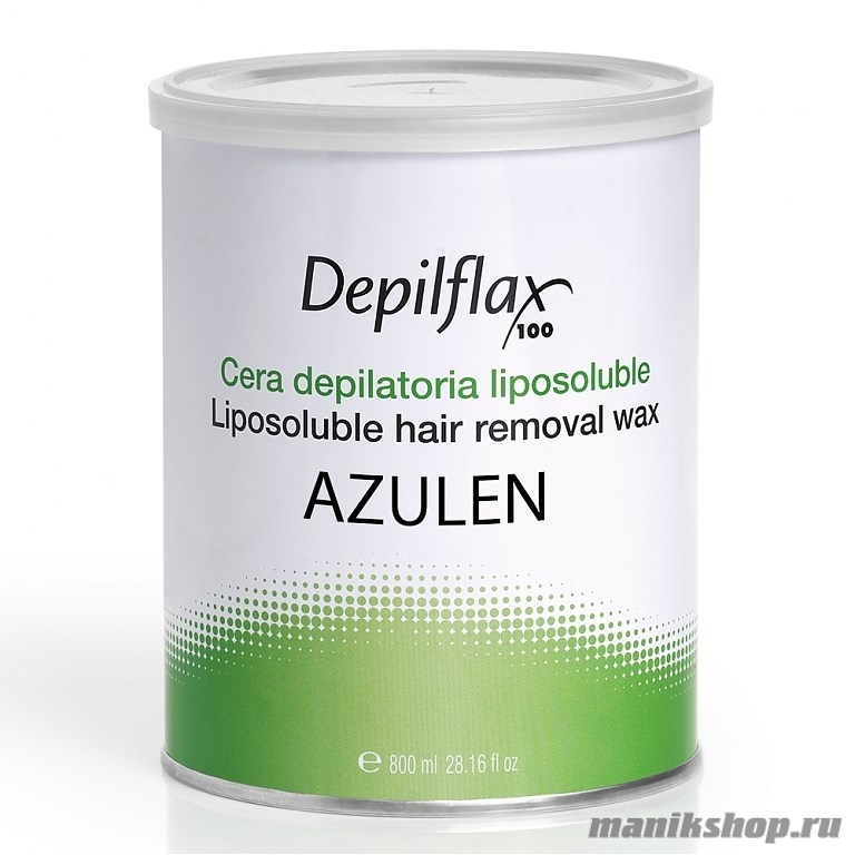 Подходит для тонких и средних по толщине волос, используется для чувствительной кожи. Не редко используется для депиляции у мужчин. Входящий в состав азулен (масло из цветов ромашки), оказывает противовоспалительное, успокаивающее действие. Воск Depilflax100 Azulen используется для проведения процедуры клиентам склонным к появлению воспалений. Равномерно ложится и легко снимается бумагой, практически не оставляя излишков материала на коже.